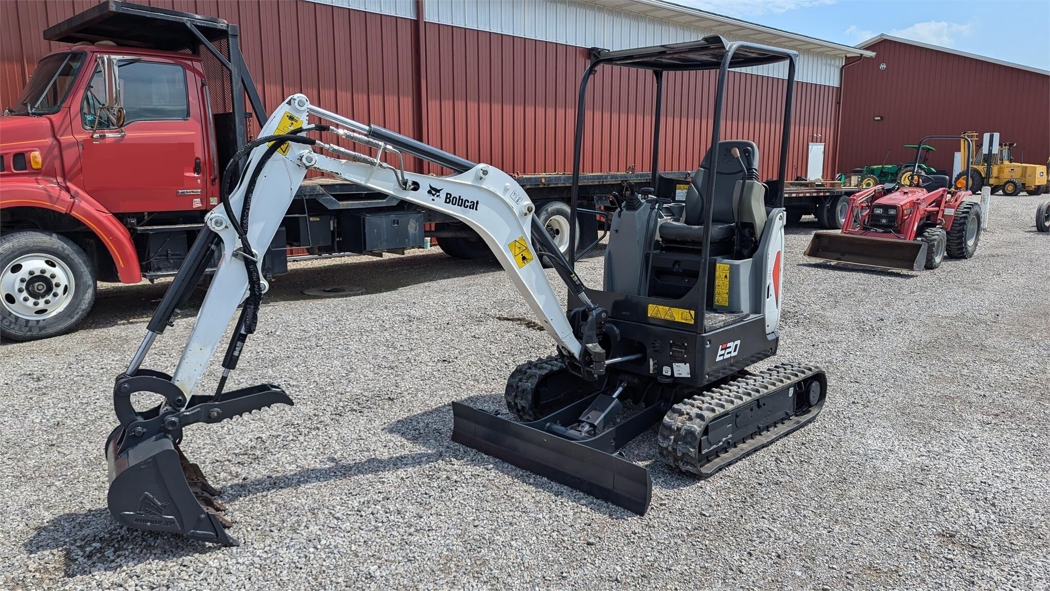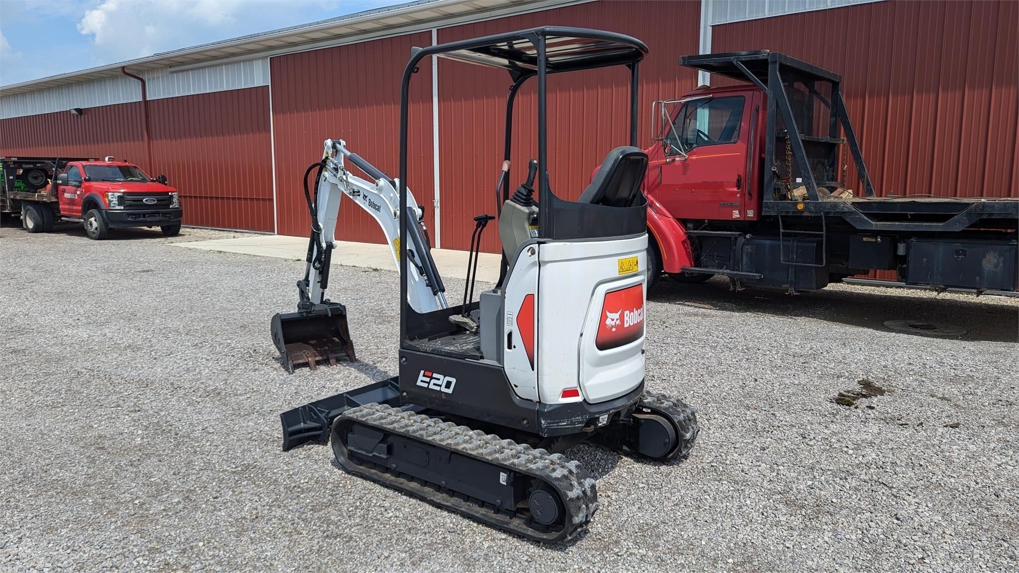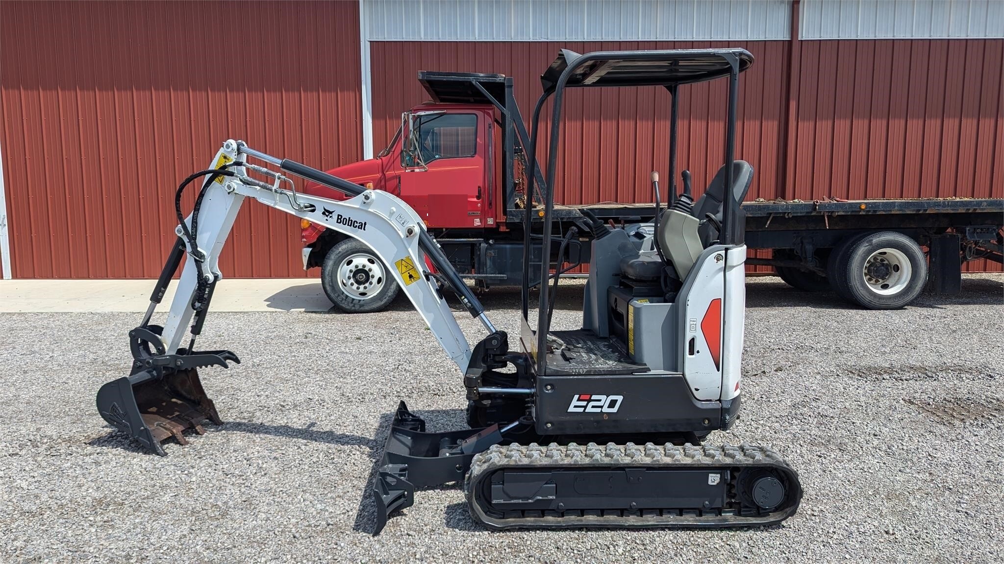 2017 Bobcat E20 excavator with a 3 cylinder, 13 HP diesel engine, 9″ wide rubber tracks, and a hydrostatic transmission with 2-speed. This machine has a 53″ blade with hydraulic lift, a 12″ digging bucket, a hydraulic thumb, auxiliary hydraulics, open ROPS with a canopy, a Kubota engine, and hydraulic adjustable track spread. It is clean and runs well. 1,681 metered hours. Serial number B3BL14286. Key Specifications Detailed Specifications |