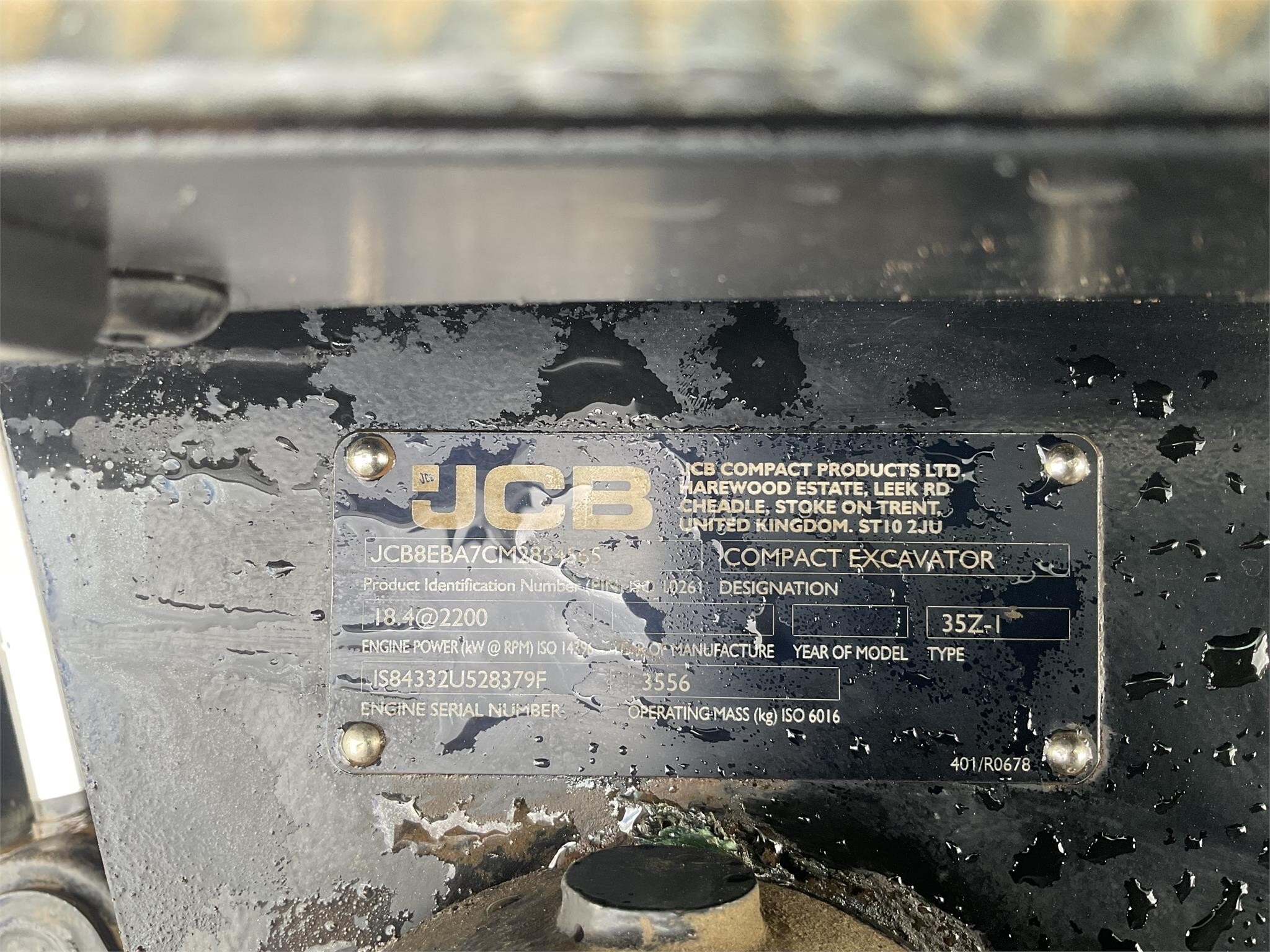 Serial #: JCB8EBA7CM2854565