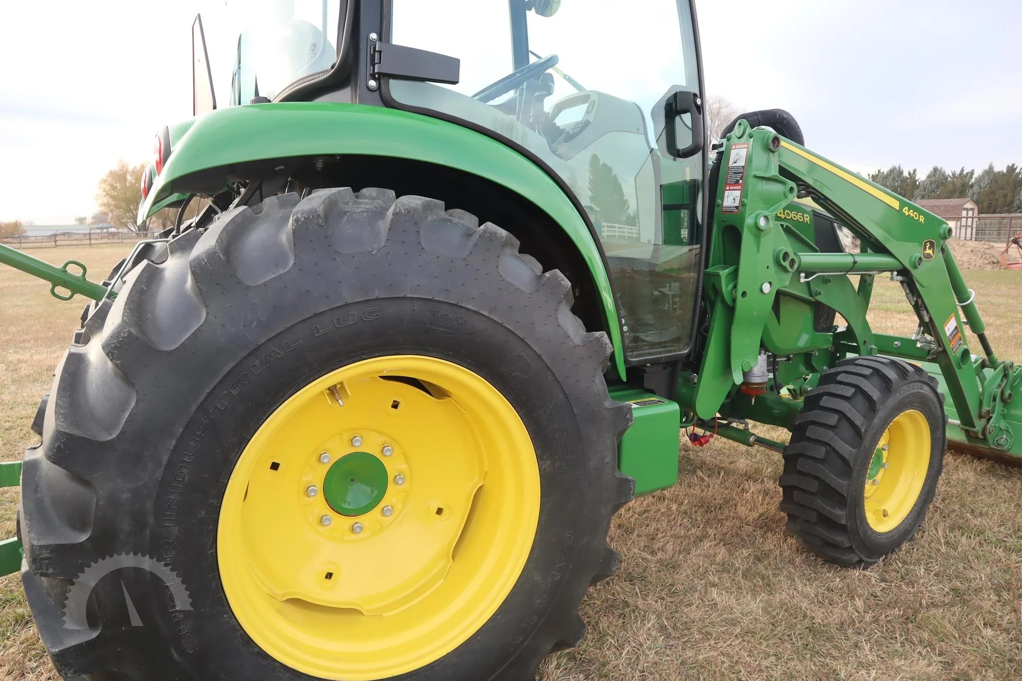 | Description | Only 143 hrs. Air Ride Seat. Perfect shape 65 Hp Turbocharged John Deere 4066R, with 440R loader and quick attach bucket, 2 rear remotes, 3 point with quick attach included, fender mount 3 point controls for easy hookup, cab with air and heat. Used to mow small acreage twice a year and stored inside when not in use. |